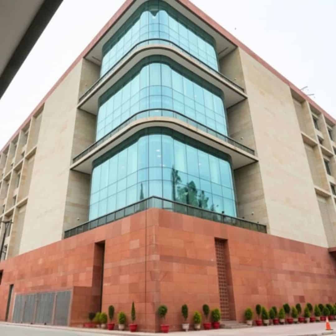 Modern building with Alubreeze aluminium metal louvers designed for smart sun control